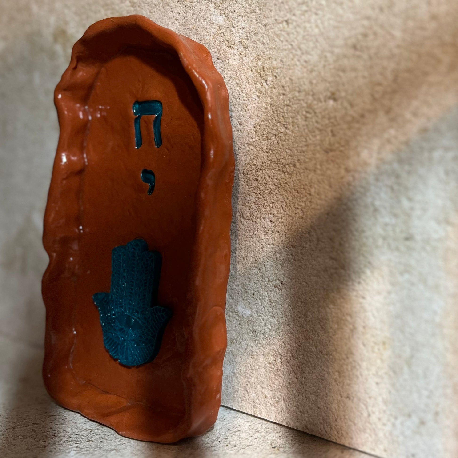 Celebrate tradition and protection with this Handmade Chai and Hamsa Jewish Wall Art. This piece was carefully sculpted from polymer clay, combining two meaningful symbols of Judaica to create a unique, thoughtful decoration for your home.