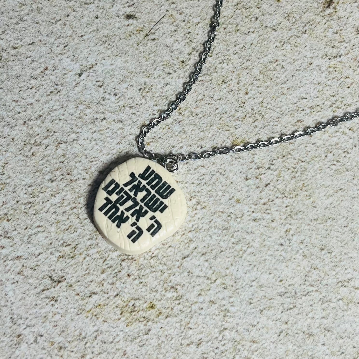 Keep faith close with this Modern Shema Pendant Necklace - a minimalist piece that carries deep meaning. This pendant was sculpted by hand from polymer clay, featuring the sacred words of the Shema in Hebrew - a timeless reminder of strength, connection, and devotion.