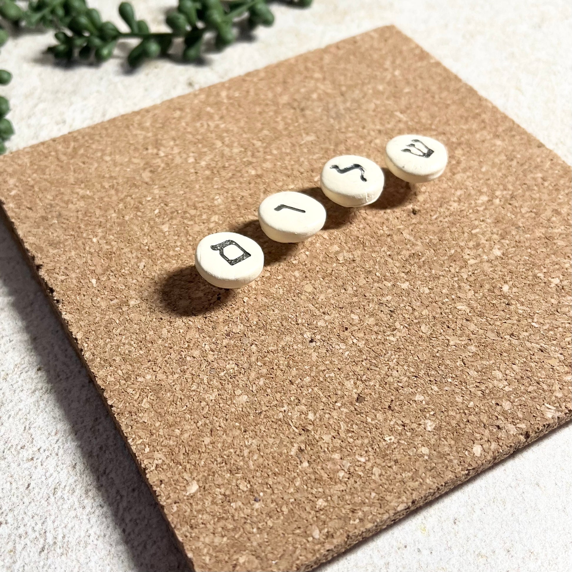 • Material: Polymer clay with hand-stamped Hebrew letters